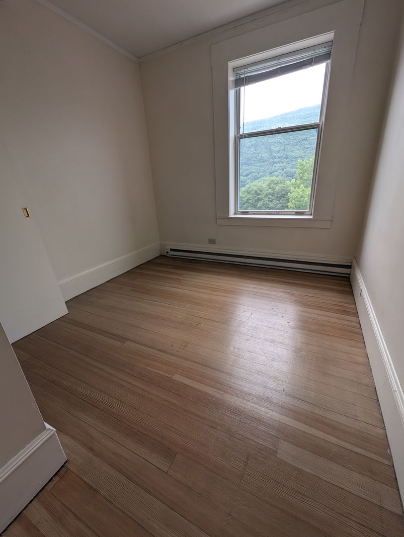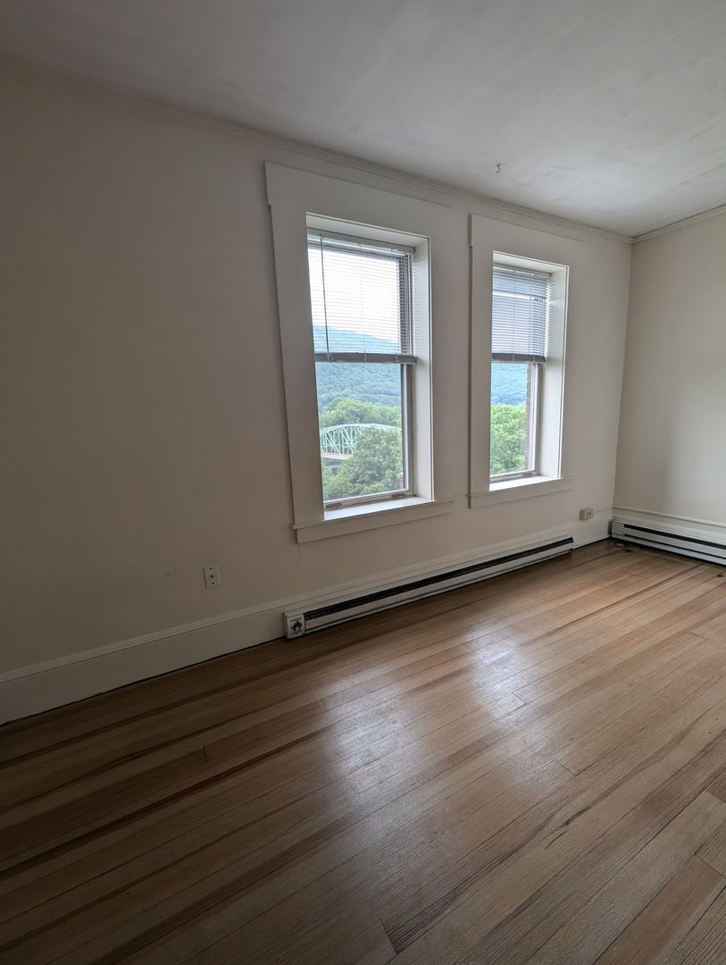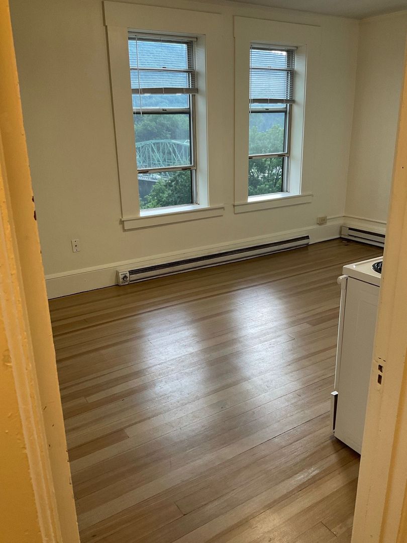 1 bedroom located toward the back of the building with hardwood floors, custom kitchen cabinets and views of the Connecticut river and the Wantastiquet mountains. Rent includes hot water, tenant pays electric (heat is electric). Secure, controlled street access and on-site laundry. Building has high speed internet available for $50 per month, or you can get you own. This is a non-smoking, non-pet property. This property does not have on-site parking, however monthly parking is available for purchase through the town of Brattleboro in a nearby covered garage.